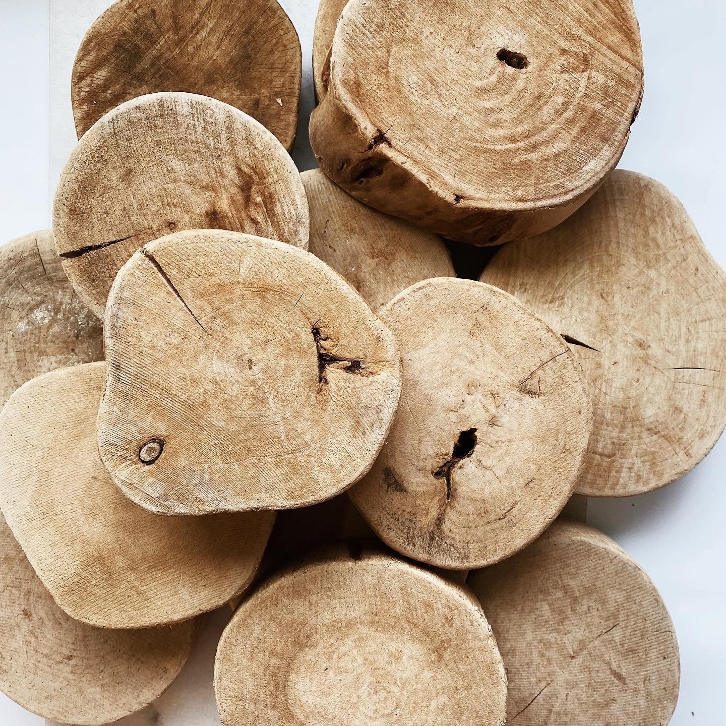 Use this natural wood slab riser to display your candles and other items like plants. Approximately 6.5” round, 1.5” tall. No two are alike, each one will vary, many have natural knot holes and cracks.