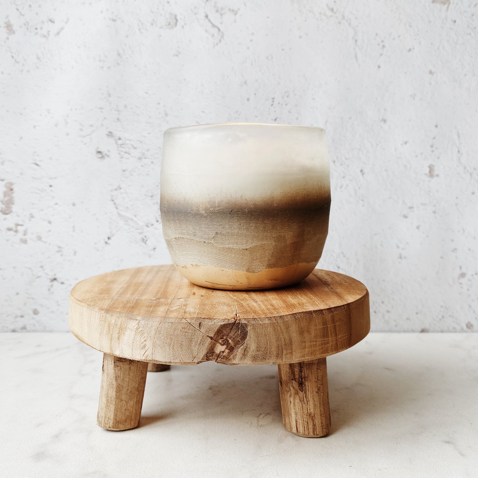 Use this wood pedestal to display your candles and other items like plants. Small approximately 5.5” and large approximately 7.5” round, 2.5” tall. No two are alike, each one will vary, many have natural knot holes and cracks.